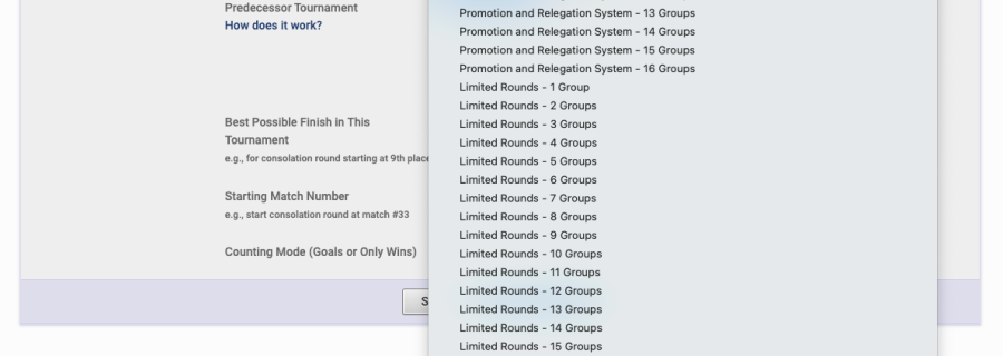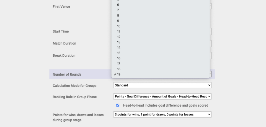 If many participants are to play against each other in a small number of groups, it may be advisable to limit the number of rounds. This means that not everyone plays against everyone else. Instead, each team plays a fixed number of games. For example, in a group of 10 participants, 5 games can be played, followed by a knockout round between the top 4 participants.