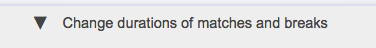 If you’d like to renew the times for a tournament and want them to be automatically calculated, just click on the little triangle next to Change durations of matches and breaks or in the case of leagues click Change Matchdays. The same form is opening that you already saw in Prepare Tournament.